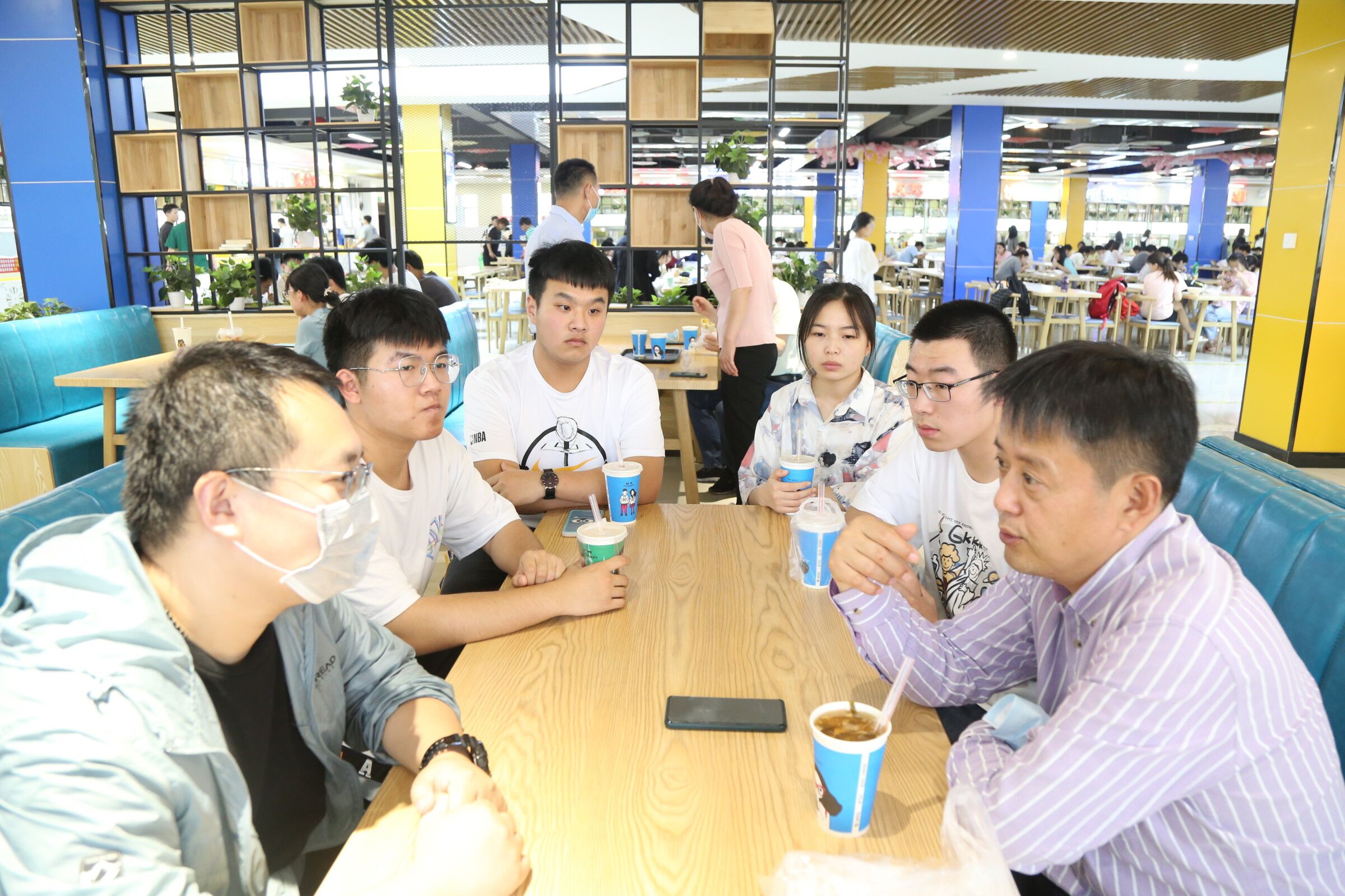 最后,李波来到崇文校区餐厅,与同学们共进晚餐,并进行了亲切的交谈。他回答了同学们比较关注的考研自习室、校园景观等问题,并征求了有关对餐厅条件、饮食安全等多方面的意见和建议,叮嘱同学们要合理膳食,注意身体健康。针对同学们面临期末考试心理压力比较大的问题,李波表示要对学生和课程教学双负责,争取为同学们提供最佳学习条件。