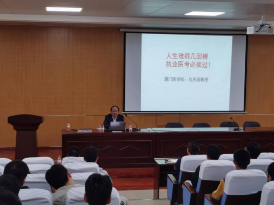 针对我院临床医学专业学生,刘教授以“人生难得几回搏,执业医考必须过”为题展开报告,就医考考试形式、时间、流程、题型等问题为同学们进行了详细的讲解,为同学们分享了考试过程中的答题技巧,最后刘教授鼓励同学们心中要有目标,手上要有行动,为提升执业医考通过率早准备、早努力、早奋斗!刘教授的报告深入浅出、图文并茂、精彩纷呈,赢得了现场同学们的阵阵掌声,使同学们对今后的职业生涯规划有了更深的理解,也有了更明确的学习目标。