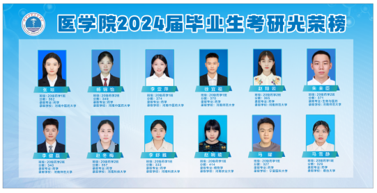 考研捷报传,桃李竞芬芳。在2024年的全国研究生招生考试中,1590巴黎人登录网址学子锐意进取,奋勇争先,再创佳绩!共计有53位优秀学子成功上岸,分别被郑州大学、广州医科大学、南京中医药大学等国内知名院校录取。