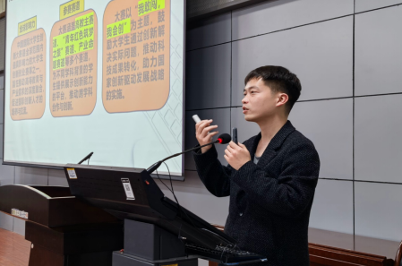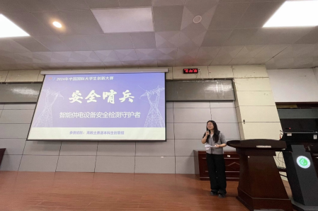 本次动员大会特别邀请了2024年获得国赛铜奖的电气与机械工程学院的项目《安全哨兵智能供电设备安全检查守护者》的负责人王慧峰同学来分享参赛经验。王慧峰在分享经验时提醒同学们,项目展示务必注重真实性,所选用的图片要真实可靠,更能增强项目说服力;同时,数据和重点内容呈现要直观明了,让评委能迅速抓取核心内容,建议运用简洁图表、精炼文字,避免信息繁杂等情况。