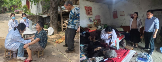 针对行动不便的特困户家庭,医疗服务团队更是主动上门送医,为老人们进行全面的身体检查,根据病情调整用药,并详细叮嘱日常护理要点。老人们用期盼的眼光和质朴的语言向师生一行表达着内心的感激:“谢谢你们大老远跑来,太贴心了!”