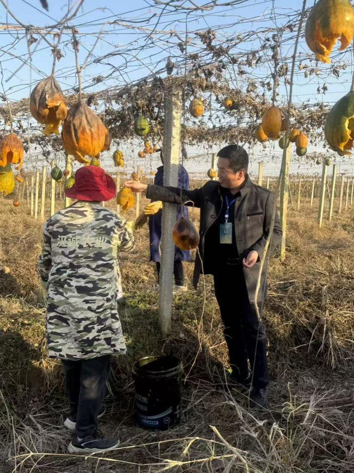 我院师生深入田间地头,认真查看瓜蒌长势及采收情况,与基地负责人、种植农户面对面交流,详细了解产业发展中遇到的技术瓶颈与实际需求。针对基地发展规划,服务团明确将聚焦瓜蒌药用成分精准分析、高附加值产品深加工、瓜蒌瓤等副产物综合利用等关键领域开展专项研究。目前,基地已配备瓜蒌籽干燥、炒制及瓜蒌膏全自动熬制等设备,我院的技术支持将有效助力其破解加工环节的技术难题,进一步提升产品附加值,推动瓜蒌产业从单一种植向“种植+精深加工”的全链条发展模式延伸,让每一份农产品都实现价值最大化,直接提升种植户的收益空间。