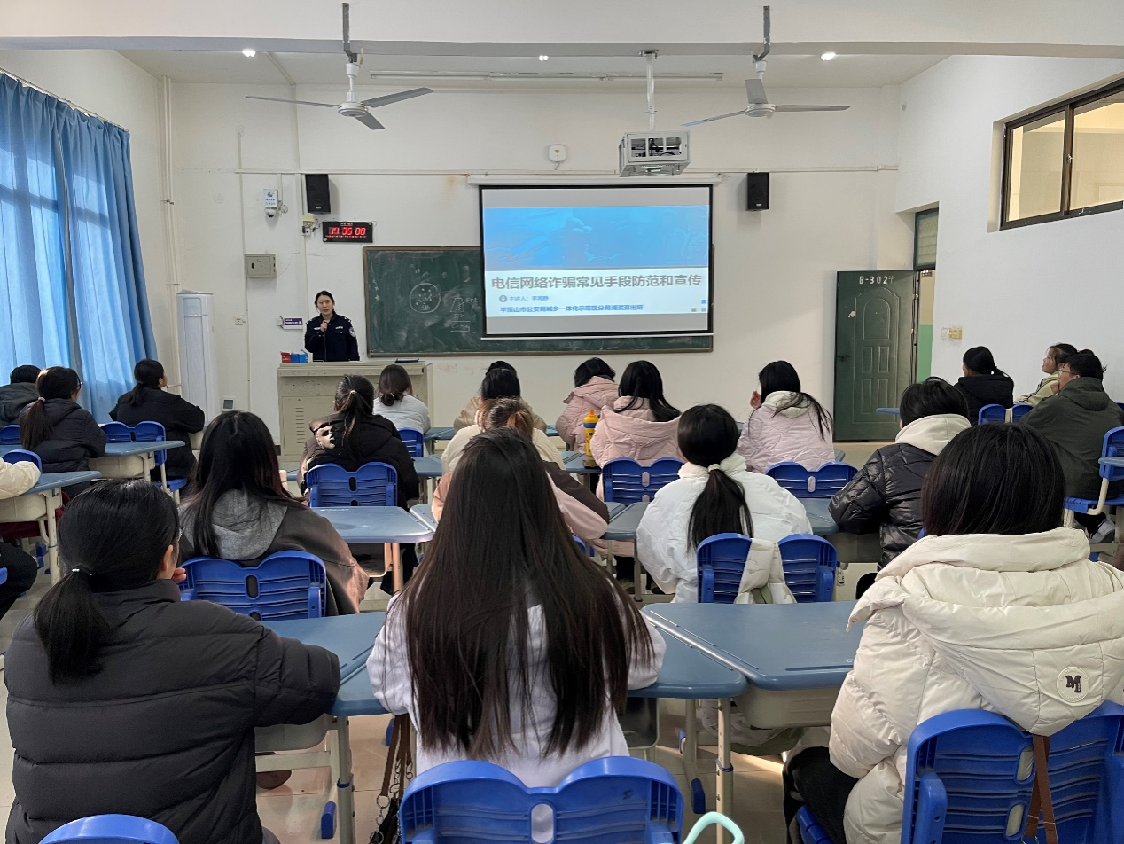 为有效防范网络电信诈骗,12月2日下午,我院联合学校保卫处,特邀示范区分局湖滨派出所民警李海静来院为学生举办反电信诈骗教育讲座。