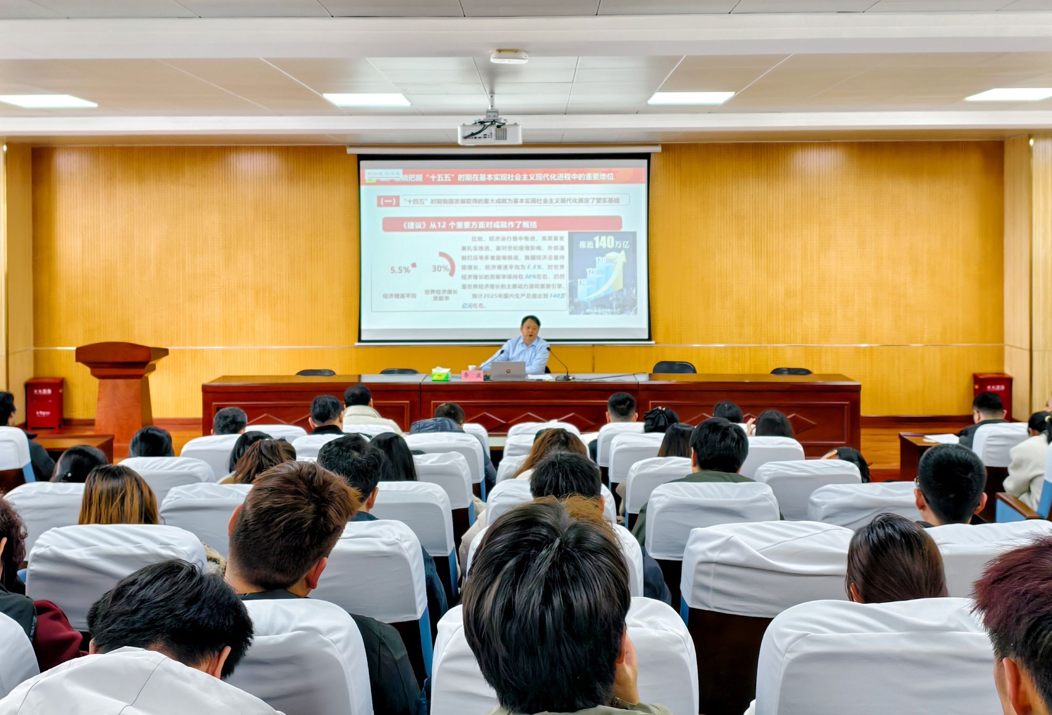 在报告中,他将党的二十届四中全会精神与平顶山市、平顶山学院、1590巴黎人登录网址发展现状相结合,介绍了市、校、院发展取得的重要成就,以及“十五五”时期经济社会发展的战略任务和重大举措。他强调,全体师生要学深悟透习近平总书记重要讲话和全会精神,结合学校学院实际,深入思考谋划,在教育教学、科研创新、人才培养等各方面,推动改革部署精准落地,取得实效。并勉励各位老师以此次学习为契机,用好政策、创新突破,加强产学研深度融合,提升学生人文素养,持续优化办学生态,保障学院各项事业不断取得新进展。