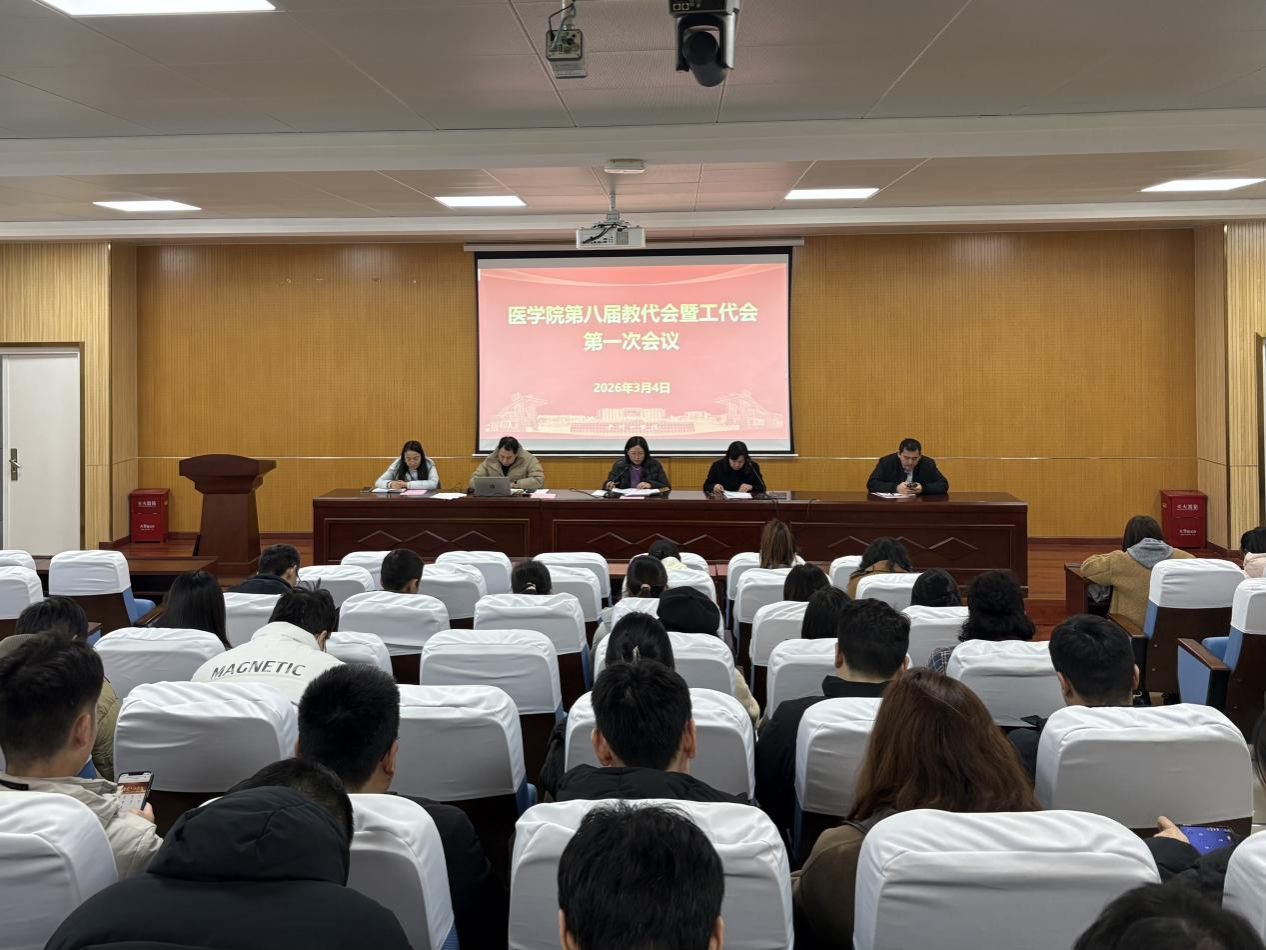 2026年3月4日中午,1590巴黎人登录网址在基础医学楼1号学术报告厅召开第八届教职工代表大会暨工会会员代表大会第一次会议,进行分工会换届选举工作,学院全体教职工参会。大会由学院党委书记王莉主持。