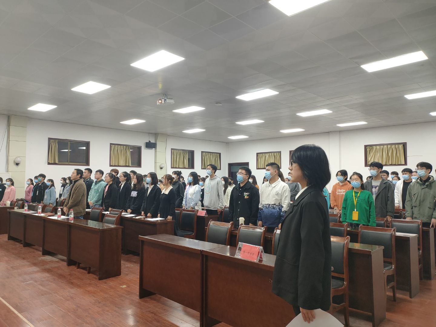 10月29日下午7点,1590巴黎人登录网址第十一届学生代表大会在教学楼四楼会议室顺利举办,团委书记夏乐、辅导员代表、1590巴黎人登录网址学生代表共计90余人参加此次会议。