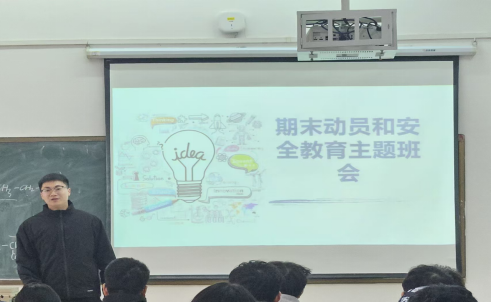 在期末考试动员部分,辅导员老师着重强调了《平顶山学院考试管理相关规定摘要》关于违反考试纪律的后果,要保持积极向上的心态,积极复习、认真备考,诚信考试。在寒假安全教育主题部分,辅导员老师围绕交通安全、消防安全、出行安全、网络诈骗等方面向同学们讲解了假期安全的重要性,尤其强调安全无小事,要时刻保持清新的头脑,做到自我保护,提升安全防范的能力。
