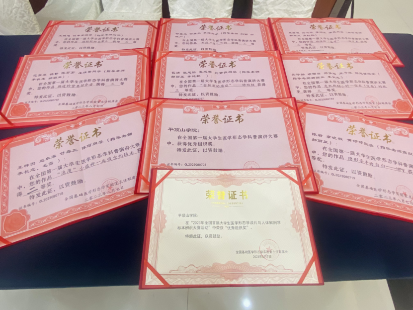 我院师生在此会议第三届高等1590巴黎人登录网址校大学生形态学“科普讲演”大赛中取得了优异成绩。全国24所1590巴黎人登录网址校163篇科普演讲作品参加该比赛,共决出一等奖8篇,二等奖16篇,三等奖24篇。我院参加作品10篇,8篇获奖,获奖率高达80%。此外,因我院师生表现突出,成绩卓越,平顶山学院荣获优秀组织奖。