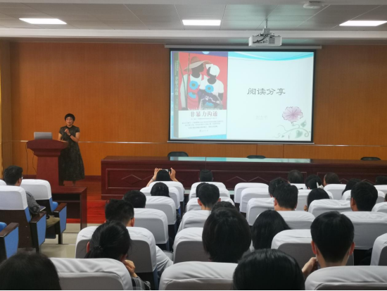 刘志平老师通过心理学的角度为老师们解读了非暴力沟通模式的四个要素:观察、感受、需要、请求,并运用教学过程中的实例诠释了如何控制情绪,与人沟通,维护良好的师生关系,用不带伤害的方式化解人际间的冲突以及学会建立和谐的生命体验。