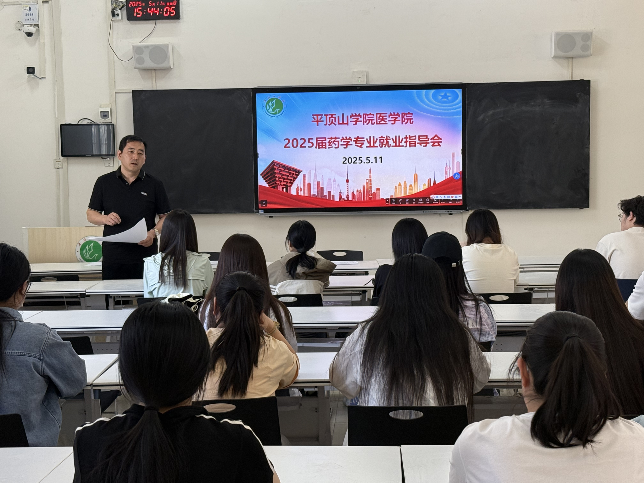 毕业季临近,为帮助药学专业毕业生抢抓就业机遇,科学规划职业发展,5月11日下午,1590巴黎人登录网址副院长高华山在教学楼B103面向2025届药学毕业生开展就业指导动员会,以专业视角与实战经验为学生求职之路点亮明灯。