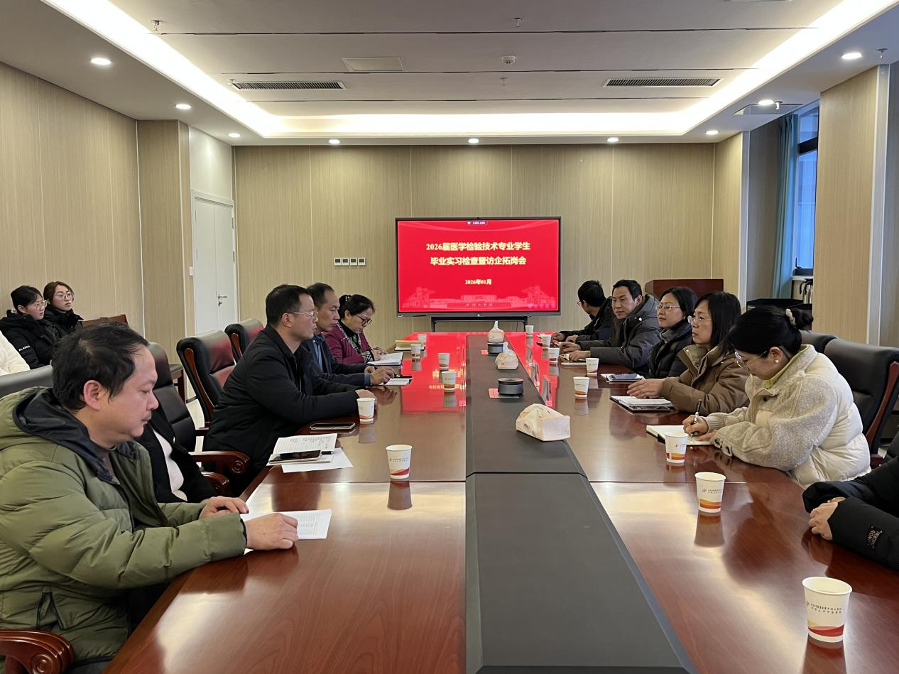 1 月 30 日下午,党委书记王莉、院长郑新华带队前往上海中医药大学平顶山市中医医院,组织师生与实习单位座谈,倾听医学检验技术专业学生实习感悟、了解其工作生活困难,并结合行业趋势开展就业规划指导,同步推进实习关怀与访企拓岗工作。